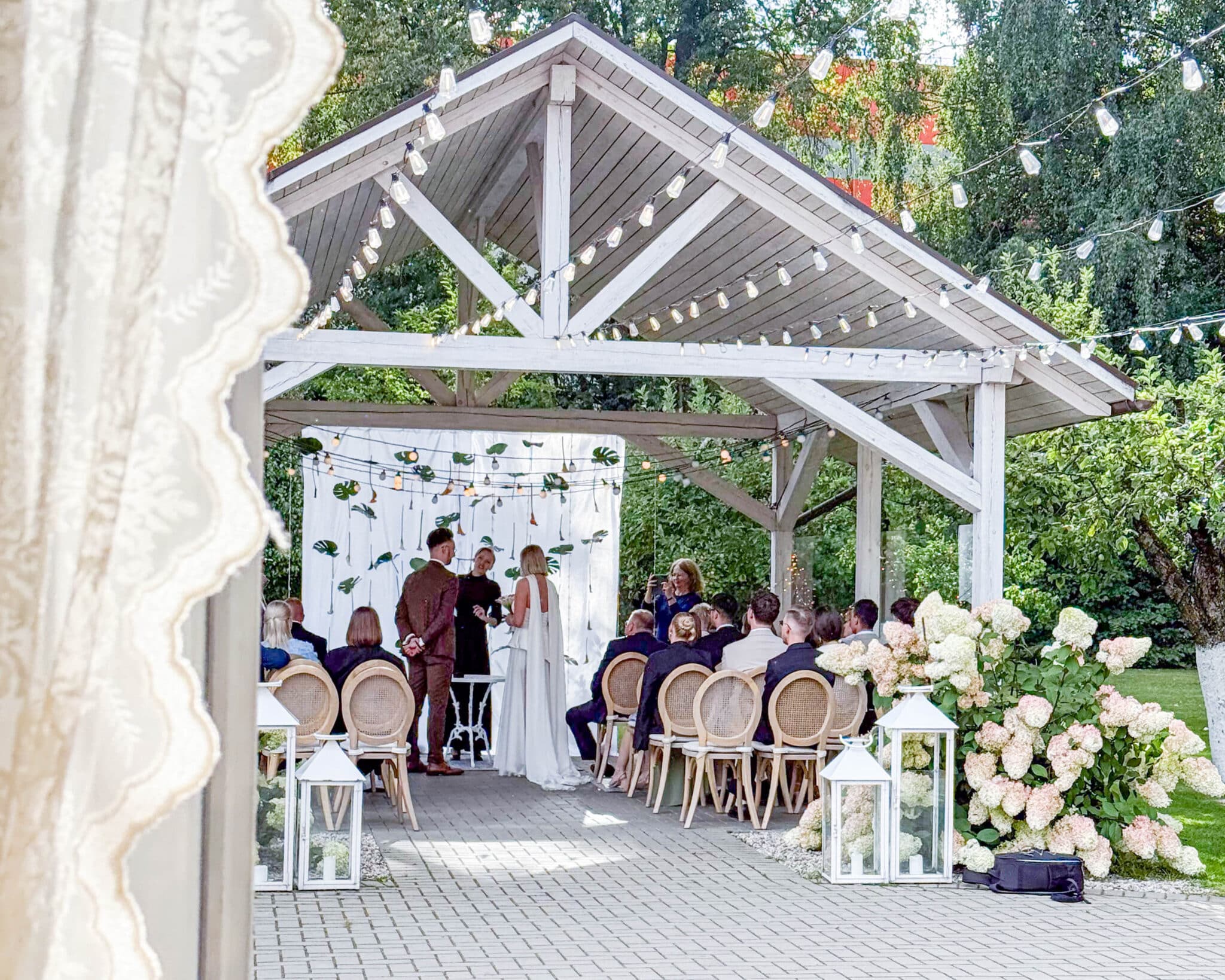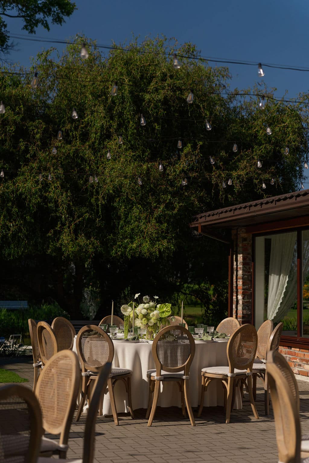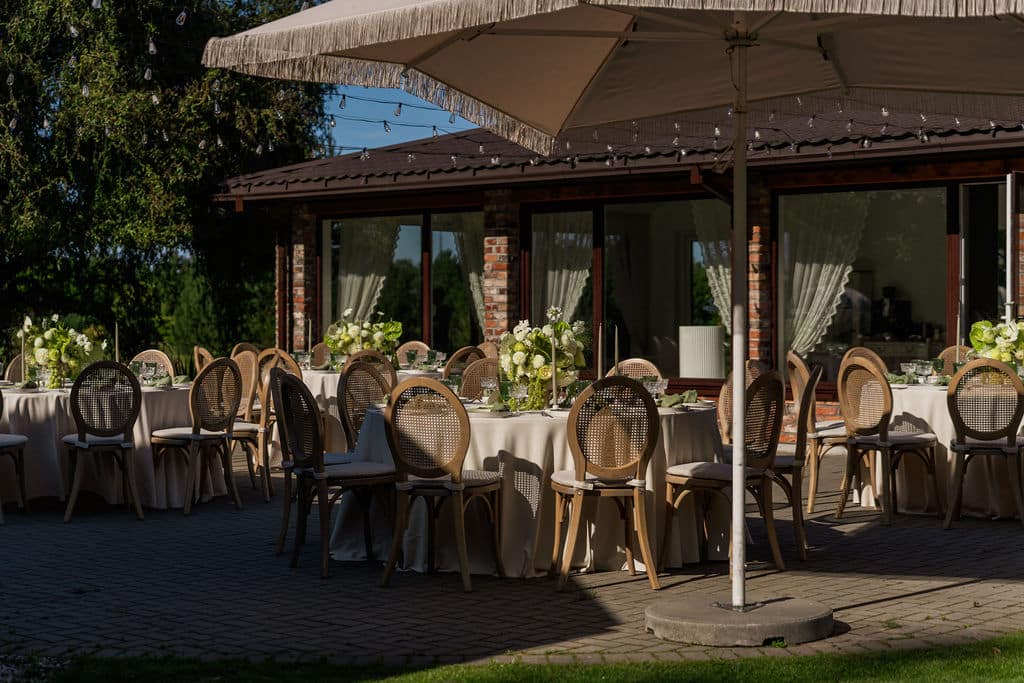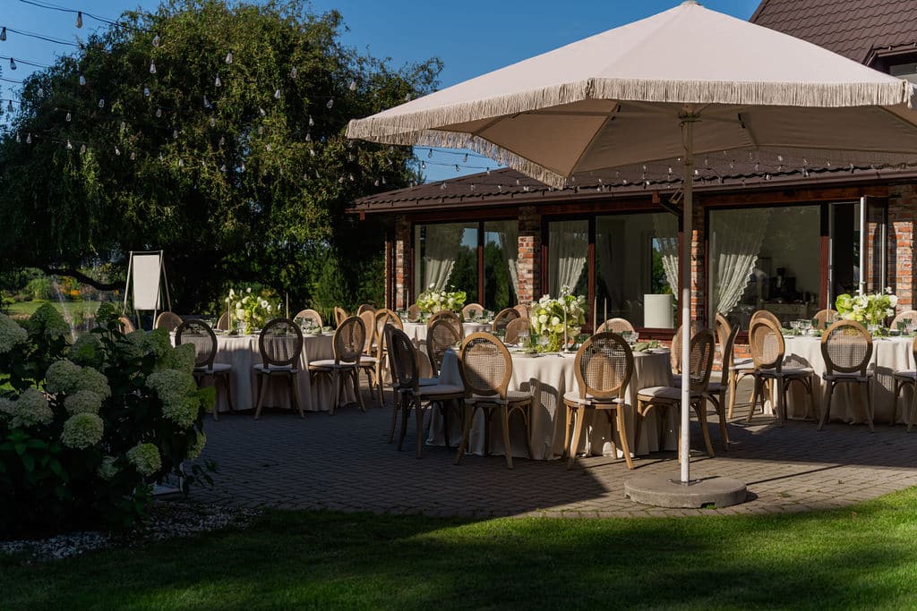 Visai greta didžiosios mūsų salės išsidėsčiusioje lauko terasoje bei pavėsinėje galime įgyvendinti skirtingus jūsų šventės tikslus. Tai gali tapti vieta jūsų vestuvių ceremonijai, šventiniai vakarienei ar furšetinio stalo principu patiektoms vaišėms.